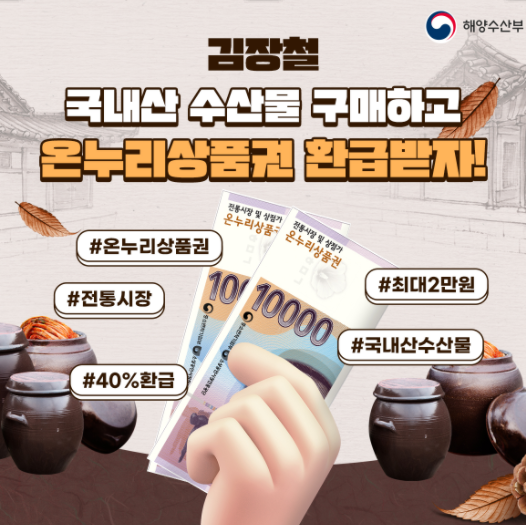 김장철 국산 젓갈 수산물 구매후 40% 환급받는 방법