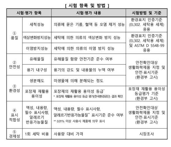 일반세탁기용 액체세탁세제 12개 제품을 시험-평가한 결과, 전 제품이 세탁 시 색상-염색 변화가 나타나지 않았으나, 유동성-함량 등의 차이로 개선이 필요한 제품이 있는 것으로 확인
