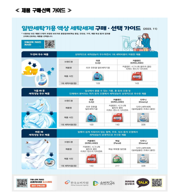 일반 세탁기용 액상세제 사용가이드와 주의 사항등 한국소비자원 안내 참고 하시면 도움 받으실수 있습니다.