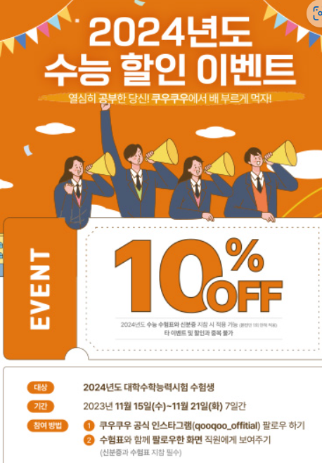수험생 수험표 함께 쿠우쿠우 공신인스타그램 팔로우 화면 보여 주고 할인 받기
