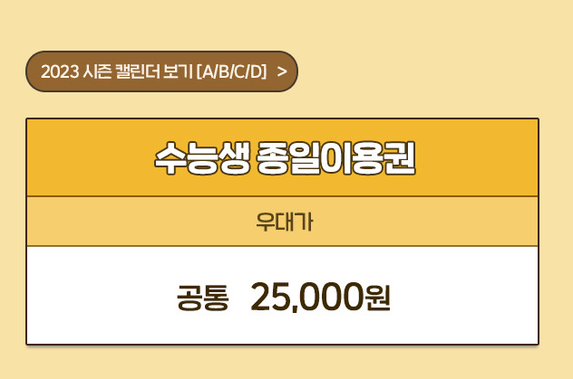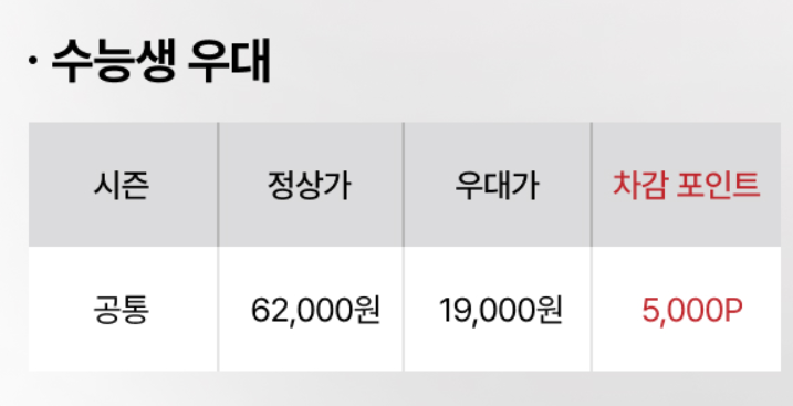 수능생 특별우대 : 종일 우대가 공통 25,000원