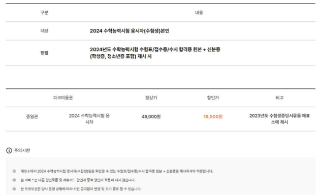 수능 혜택 놀이동산