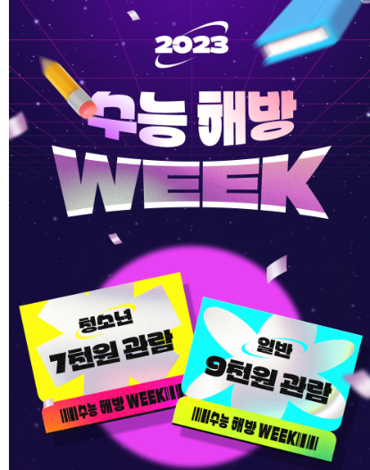 수능 이벤트 선정된 9개 영화 금액이 7,000원, 일반은 9,000원에 예약관람 가능
