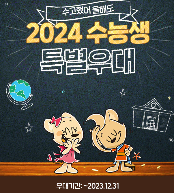 지금까지 열심히 준비 하신 수험생 여러분 위해 수험생들을 위한 수험생들의 할인혜택이 가득 해 지고 있습니다.