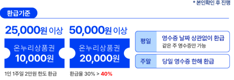 구매금액 2만5천원 이상 ~ 5만원 미만 : 환급액 1만원
