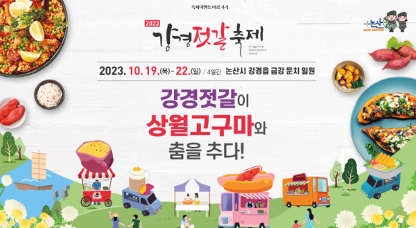 대한민국 젓갈의 대표 고장 강경에서 강경젓갈과 상월고구마와 같은 지역 특산물을 한곳에서 만나볼 수 있는 강경젓갈축제 시작 합니다.